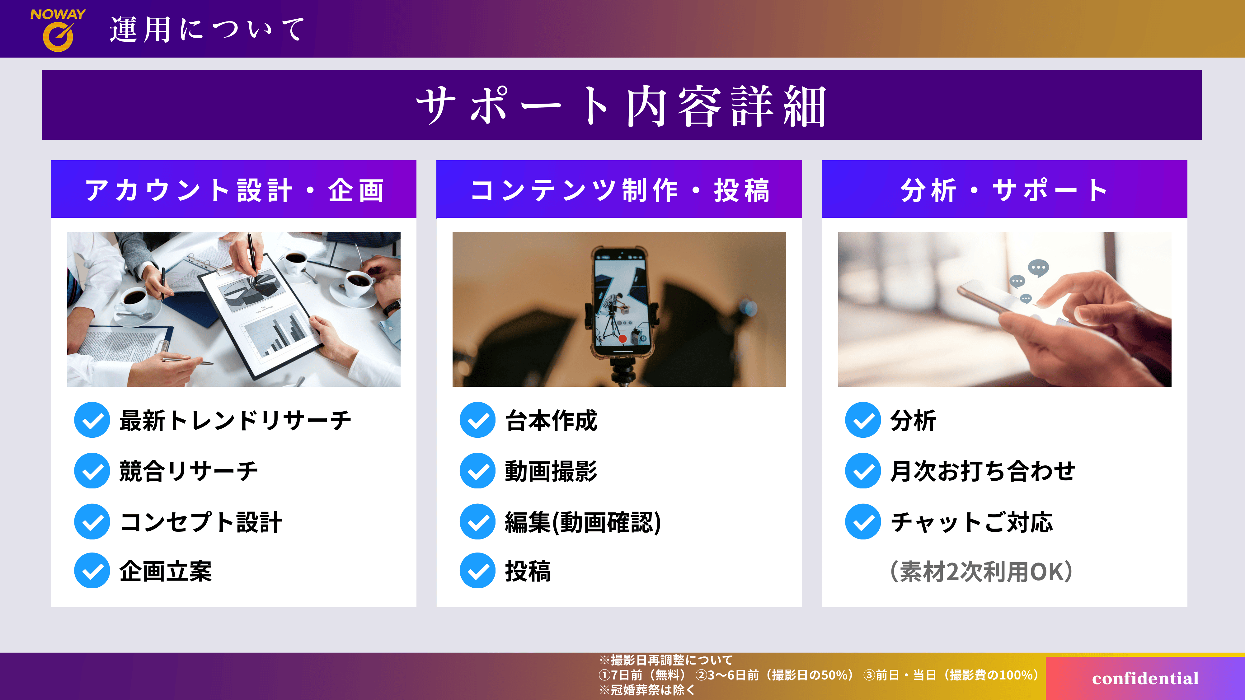 Management ServiceSNSフォロワー50万人を擁する弊社代表が監修する、ハイレベルなショート動画運用代行サービス。(TikTok、YouTube Shorts Instagramリール)最前線のトレンドと実績に裏打ちされた知見をもとに、アカウント管理、コンテンツ企画・制作、投稿スケジュールの設計から、エンゲージメントの最大化、効果測定・レポート作成に至るまで、すべてをワンストップでご提供。貴社のブランド価値を損なうことなく、洗練されたSNS戦略を実現いたします。